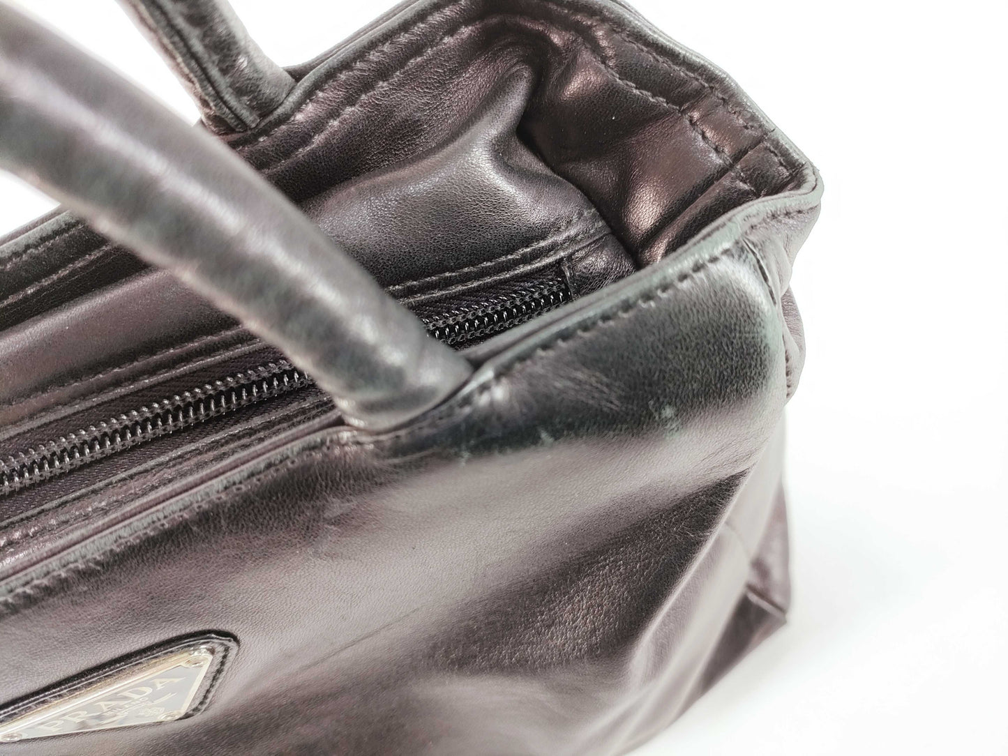 PRADA Prada Handbag with Triangle Logo, All Leather, Black, with Warranty Card