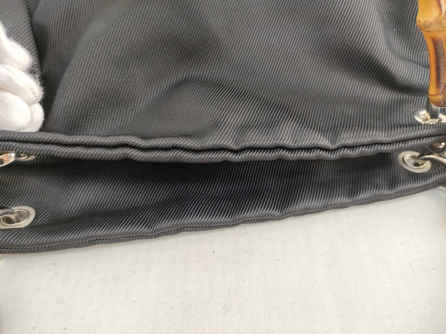 GUCCI Bamboo Gucci 000・1014 Bamboo Handbag Nylon x Patent Leather Black Handbag