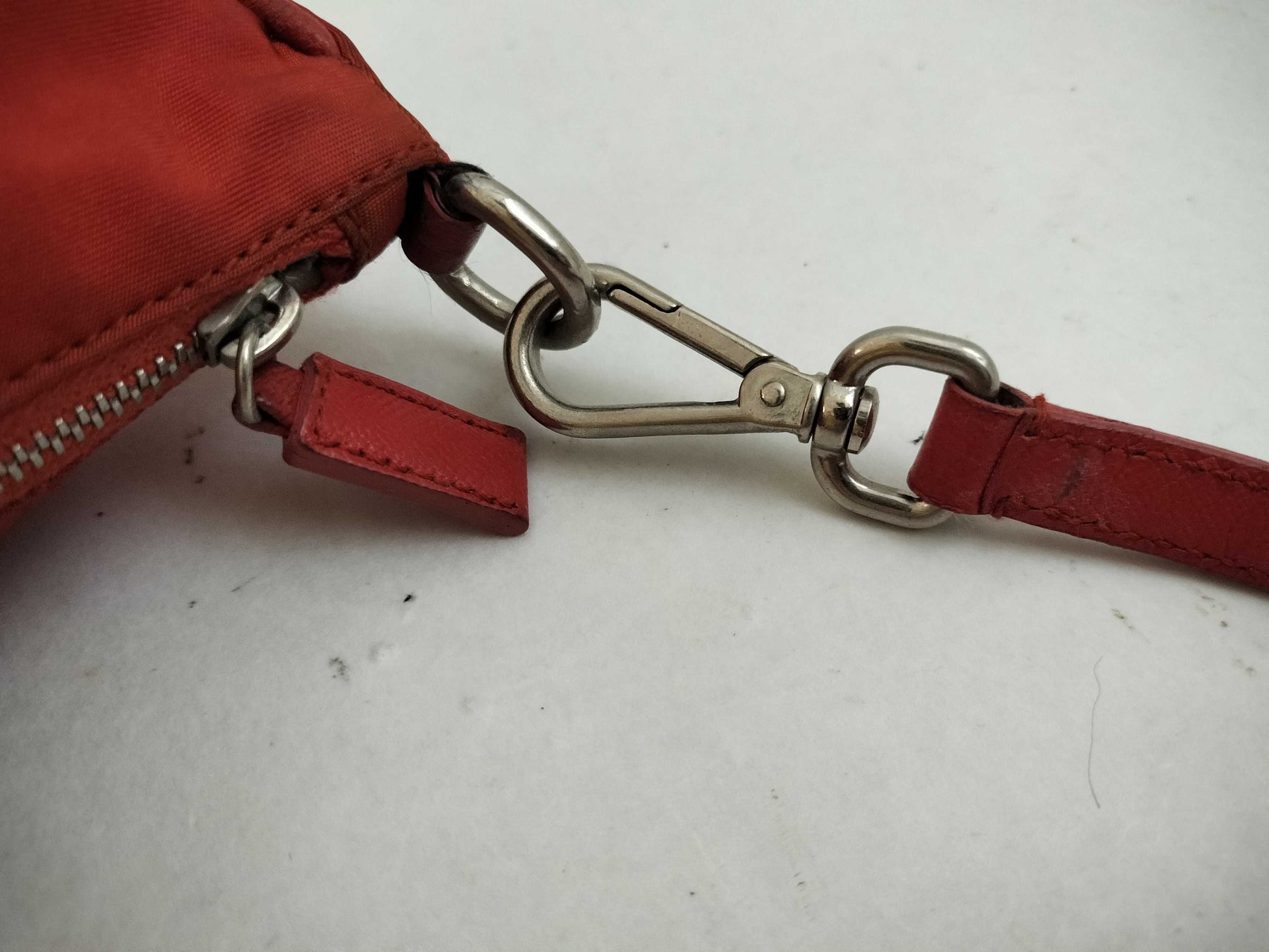 PRADA Nylon Accessory Pouch Handbag with Triangle Logo, Orange