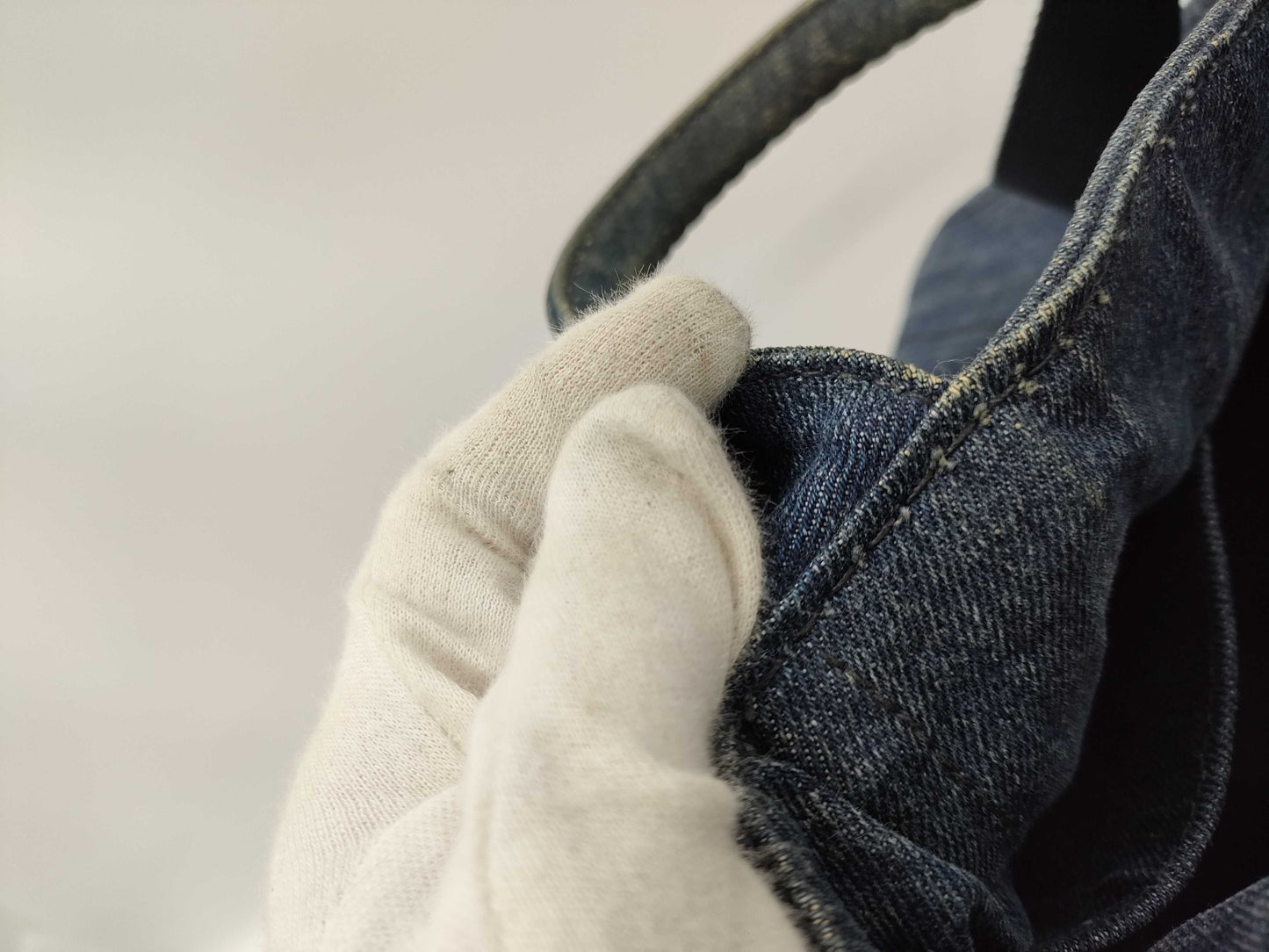 PRADA Canapa Mini Tote Bag with Triangle Plate, 2-Way, Denim, Blue, with Strap, Handbag
