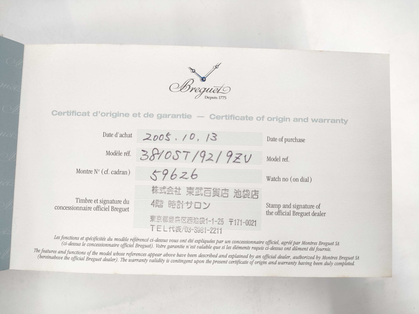 BREGUET 3810ST/92/9ZU No. 59626 Automatic Men's Watch